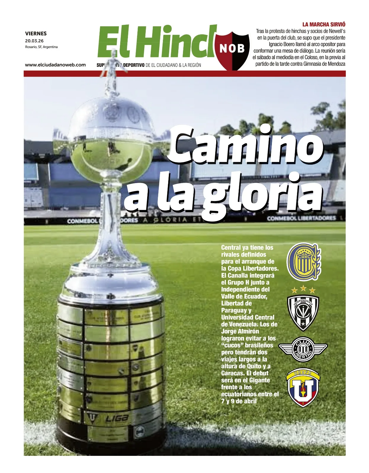 Rivales confirmados: Central comparte grupo de la Copa Libertadores con Independiente del Valle de Ecuador, Libertad de Paraguay y Universidad Central de Venezuela