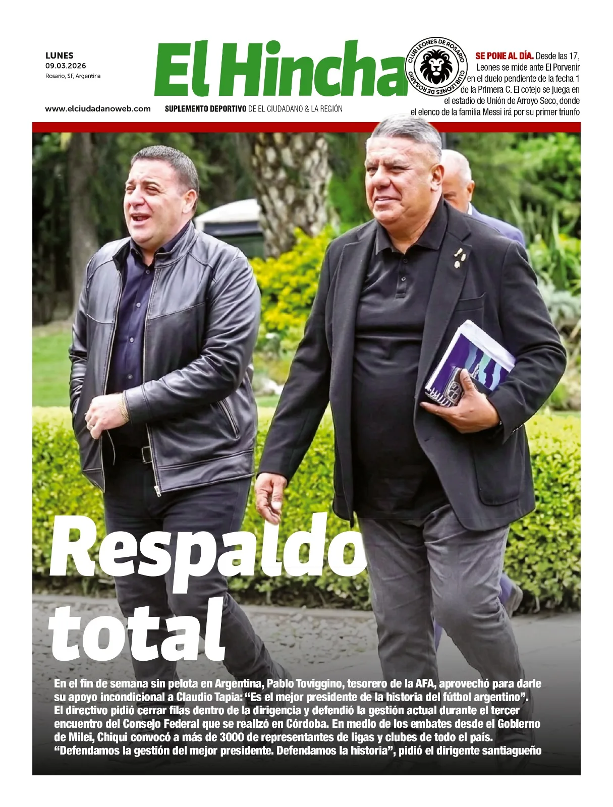 Apoyo incondicional para el Chiqui: “Claudio Tapia es el mejor presidente de la historia del fútbol argentino”