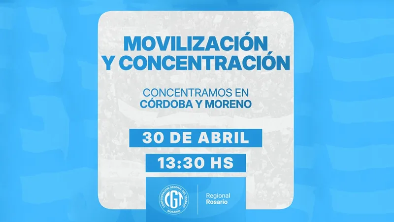 En tanto, la CGT Rosario emitió un comunicado donde se suma en la antesala al 1ro de mayo a una gran movilización. En ese sentido, se convoca a todas las organizaciones nucleadas “en esta regional y a todos los trabajadores en general” a concentrar este jueves 30 de abril a las 13.30 horas en el cruce de las calles Córdoba y Moreno