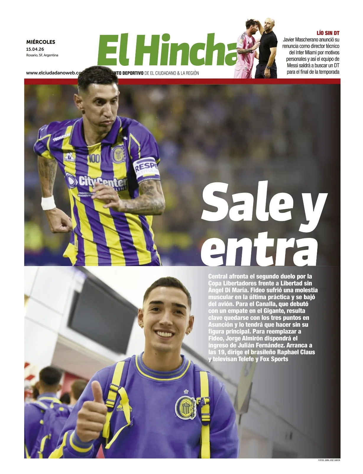 Rosario Central partió a Paraguay para enfrentar a Libertad por la Libertadores sin la presencia de Ángel Di María