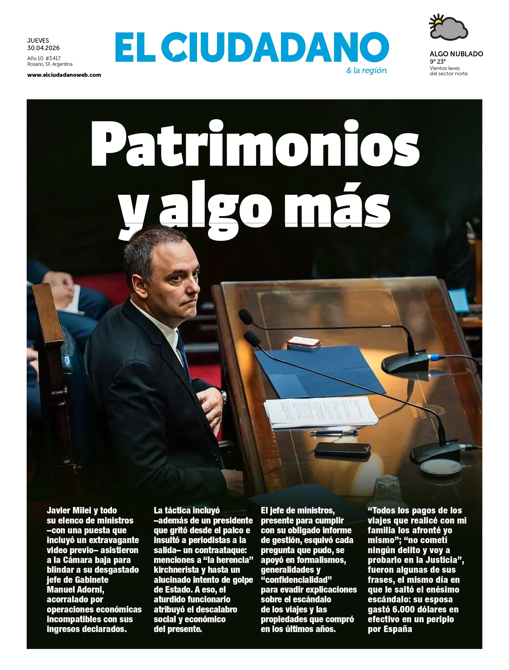 Adorni, blindado y acompañado por un vociferante Milei desde un palco, esquivó preguntas en Diputados