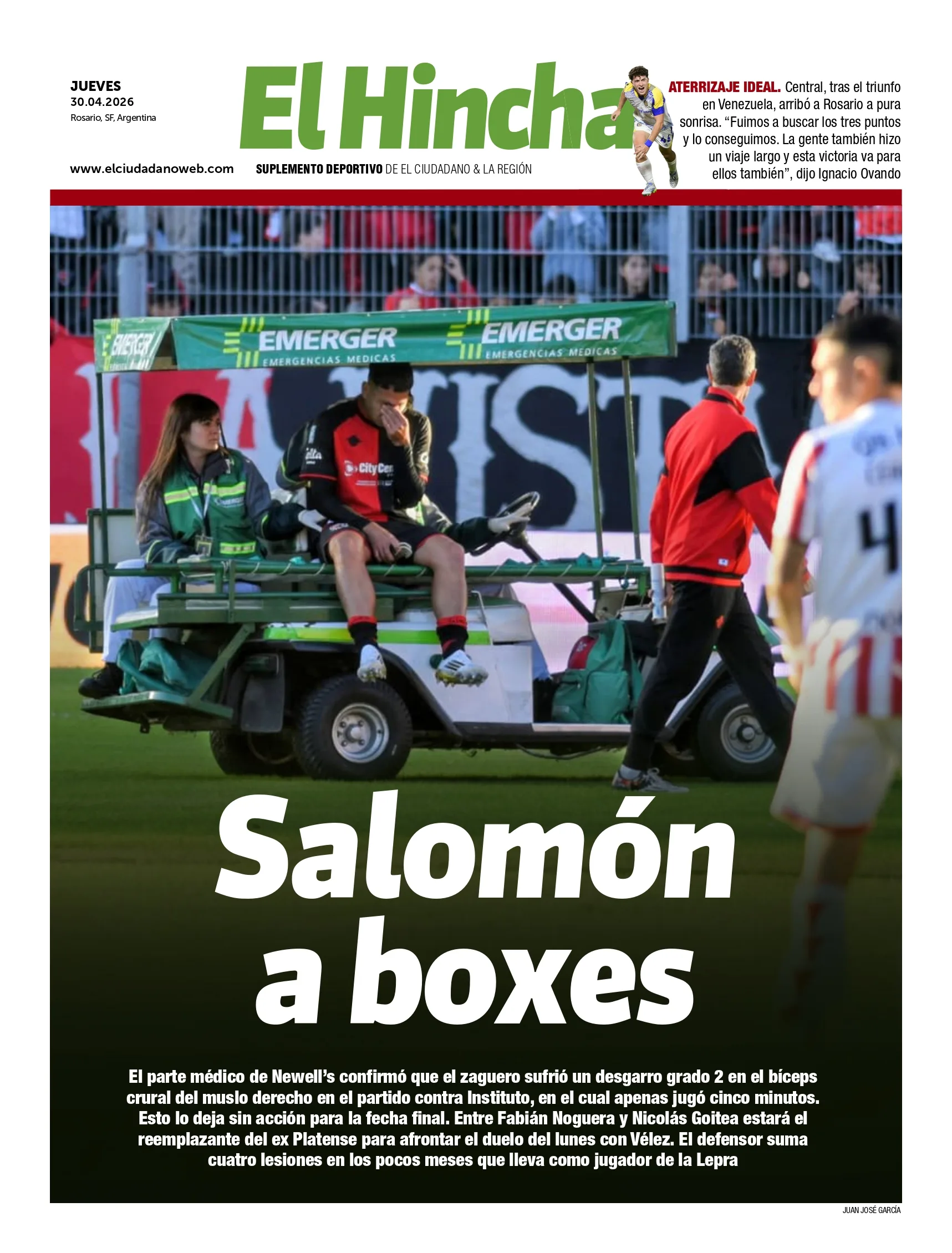 Panorama rojinegro: se confirmó que Oscar Salomón sufrió un desgarro y está descartado para jugar contra Vélez el próximo lunes