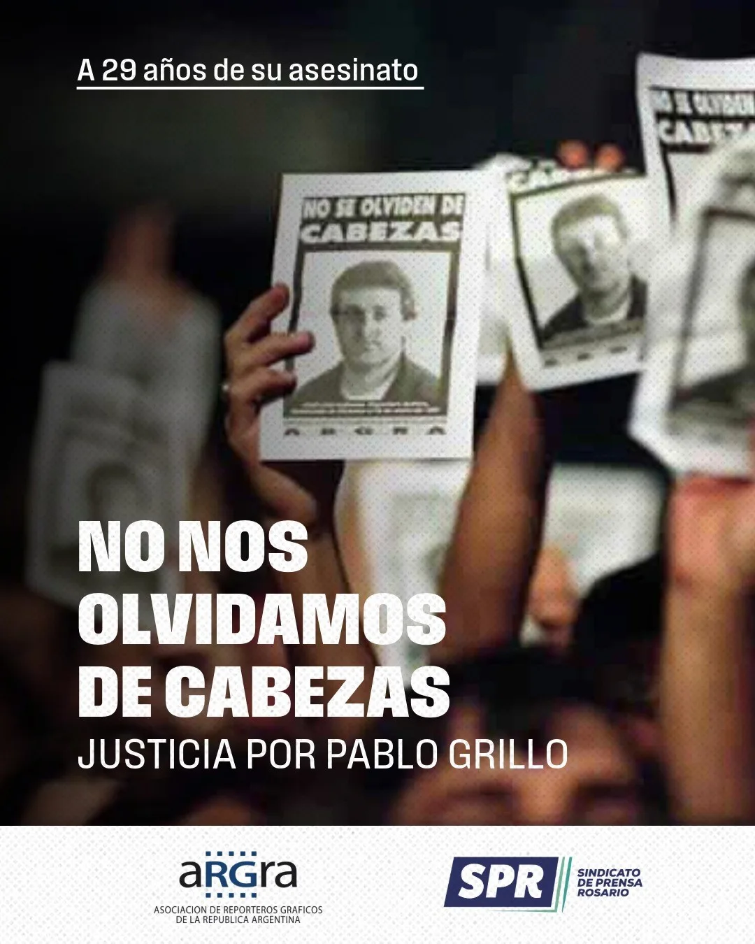 El Sindicato de Prensa Rosario (SPR) y la Asociación de Reporteros Gráficos de la República Argentina (Argra), como hace 29 años, organizan e invitan a un “Camarazo” para recordar a el brutal asesinato, y a continuar pidiendo justicia por Pablo Grillo