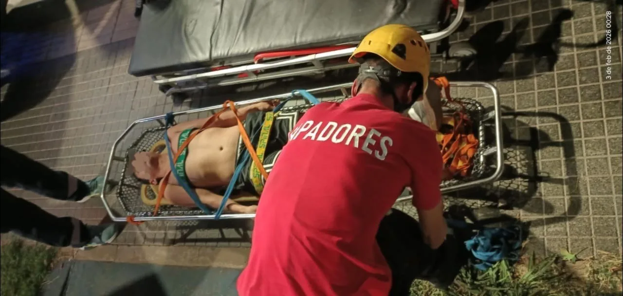 Ante esa situación, se solicitó la intervención de los Bomberos Zapadores, quienes realizaron las maniobras necesarias para retirar al herido sin agravar sus lesiones. Una vez rescatado, el joven fue trasladado a un centro de salud, donde quedó internado en observación.