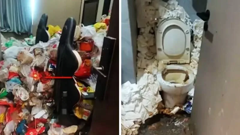 El personal de limpieza encontró montañas de basura que cubrían casi toda la superficie disponible, restos de comida en descomposición y paredes del baño tapizadas con papel higiénico usado. El olor en la habitación era casi insoportable, lo que obligó a un equipo especializado a trabajar durante tres días seguidos solo para desinfectar el área, aunque los dueños aseguran que todavía falta mucho trabajo antes de que el espacio pueda volver a recibir huéspedes.