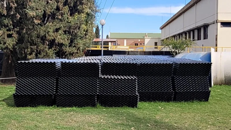 Estas piezas se fabrican a medida y en el caso de planta potabilizadora Rosario cubren casi 350 metros cuadrados de superficie.