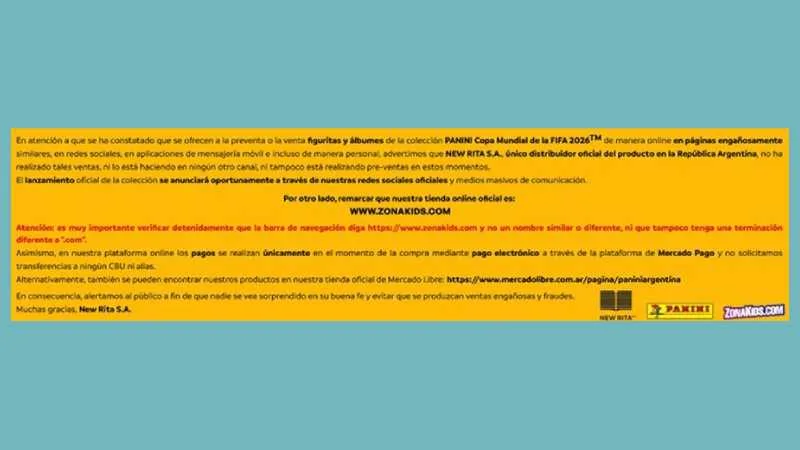 El comunicado de Panini busca frenar la proliferación de estafas que ya afectaron a varios compradores. “Recomendamos adquirir el producto únicamente en los canales oficiales para evitar inconvenientes”, remarcaron.