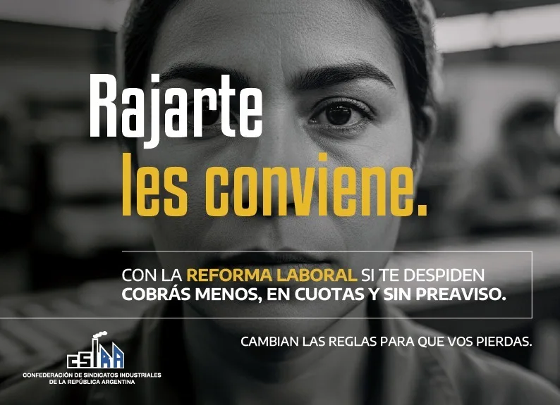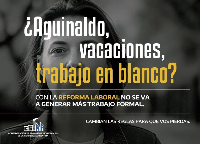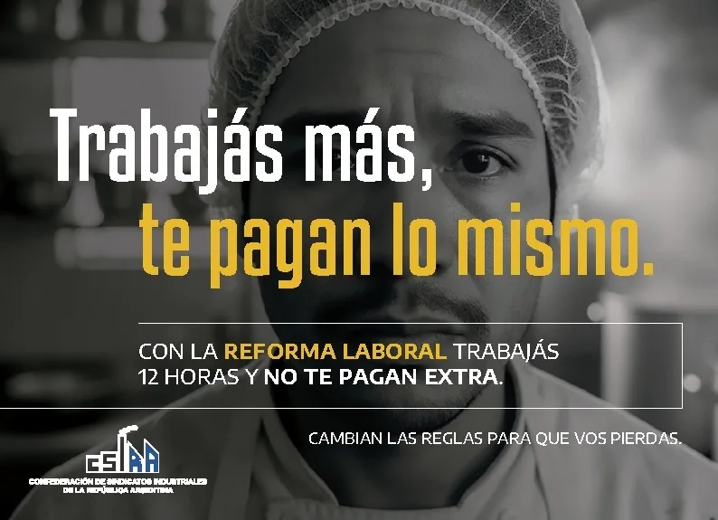 Los sindicatos industriales nucleados en CSIRA lanzaron una campaña de comunicación para advertir sobre el impacto de la reforma laboral en los trabajadores