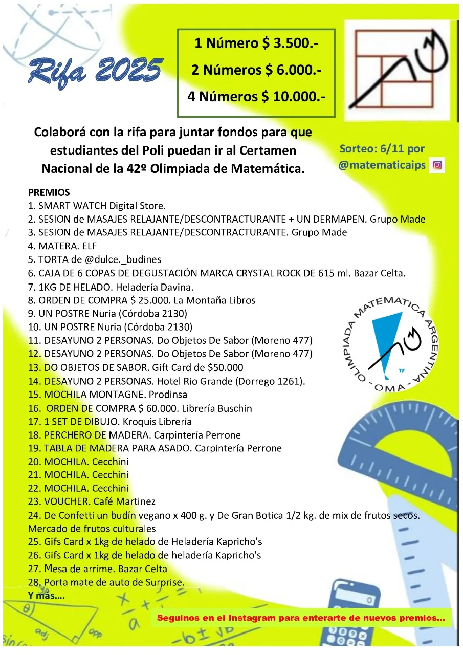 El sorteo está previsto para el 6 de noviembre, a través de la cuenta de Instagram @matematicaips.