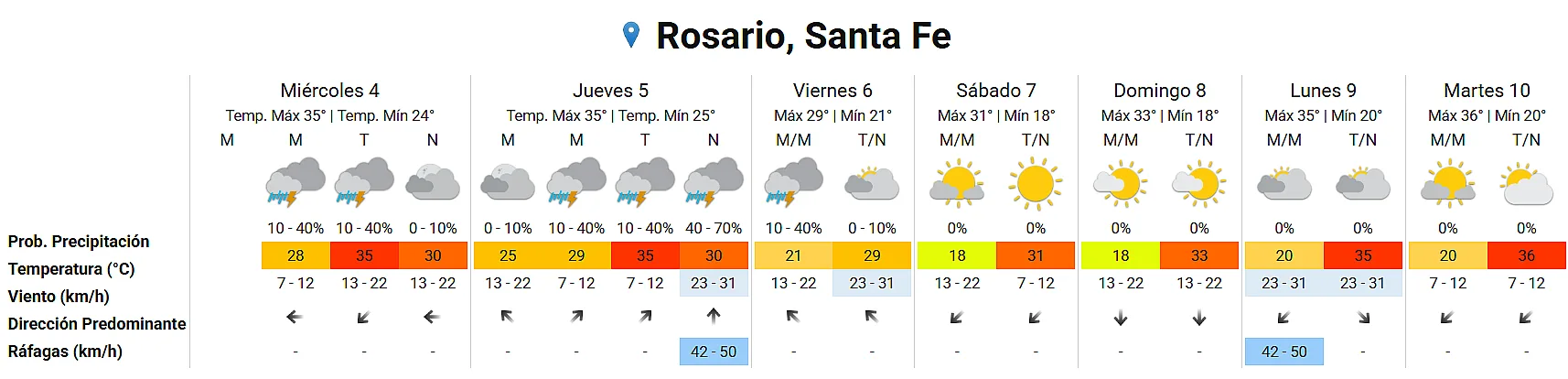 El viernes continúa con la probabilidad de tormentas por la mañana, viento del Sureste y esta vez sí, de acuerdo al pronóstico, con alivio térmico. La máxima prevista es de 29 grados.