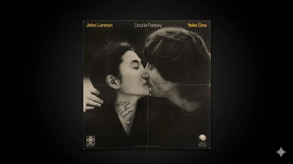 El catálogo suma además una de las piezas más esperadas: un póster promocional del álbum Double Fantasy, de Yoko Ono y John Lennon, firmado por este último el 8 de diciembre de 1980, pocas horas antes de su muerte. El objeto, dedicado al presentador Ron Hummel, podría alcanzar entre 60 y 120 mil libras.