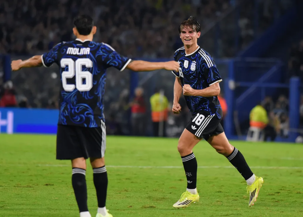 Y a los 32 minutos llegó el segundo, con un tiro libre de Nico Paz, que se metió entre los jugadores argentinos puestos en la barrera y sorprendió al arquero.