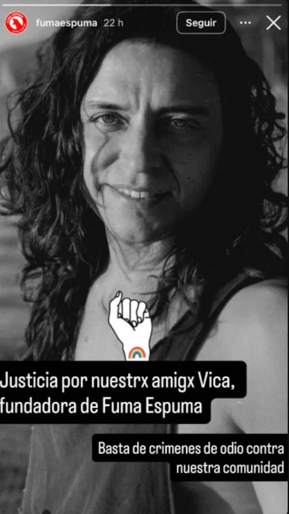 Desde la cuenta de Instagram del equipo, sus compañeros pidieron: “Justicia por nuestrx amigx Vica, fundadora de Fuma Espuma. Basta de crímenes de odio contra nuestra comunidad”.