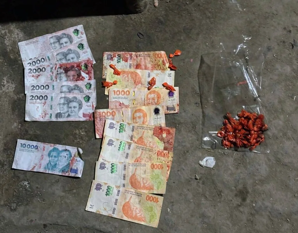 El fiscal Luis Schiappa Pietra investiga el episodio. En el lugar se encontró dinero en efectivo, unos 28 mil pesos y una bolsa plástica de color naranja con 49 bochitas que serían de droga, según las primeras hipótesis.