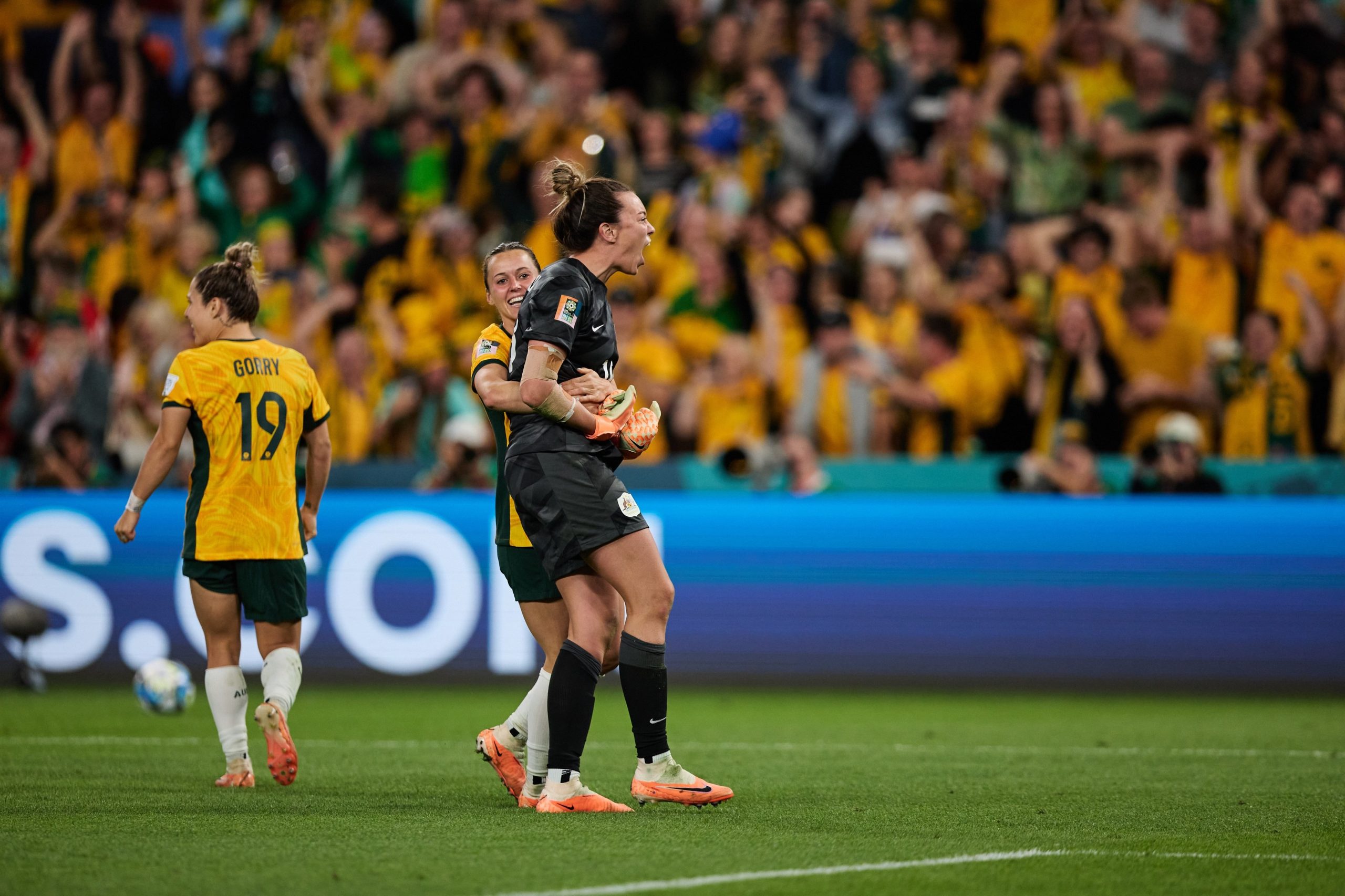 Hay silencio mientras observan a Cortnee Vine pararse frente al punto penal, bajar la cabeza y levantar la mirada. Mientras la pelota recorre el cesped hacia el arco, no se escucha más que el silencio, y después el estallido. Australia acaba de clasificar por primera vez a una semifinal mundialista, y en su casa.