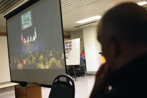 En la ciudad, la filial Rosario Norte del Credicoop, ubicada en Lagos al 100, fue una de las sedes: allí el gerente Mariano Baldi dirigió unas palabras a los asistentes, quienes tras la transmisión debatieron tanto acerca de la influencia que ha tenido el punto de vista “Acción” en el movimiento cooperativo como sobre el momento actual del país.