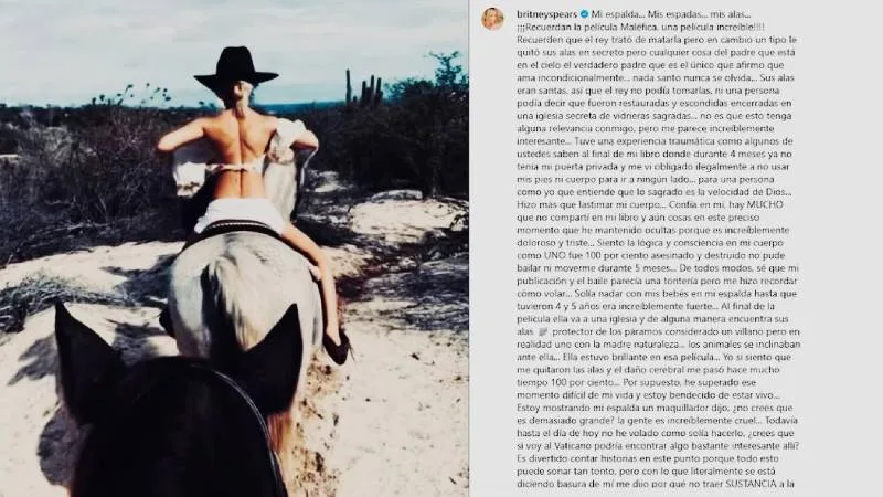 Sin embargo, en las últimas horas la artista volvió a centrarse en el ojo de la polémica al compartir una foto de ella montada a caballo, con un largo texto reflexionando sobre la oscura situación en la que se encuentra a razón de su pelea mediática con su ex esposo.