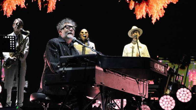 Con los músicos y músicas vestidos de blanco y dispuestos en “u” como si fueran una orquesta, un piano (que fueron distintos para cada disco) en el centro del escenario y una pantalla de fondo cuya tecnología hacía ver las imágenes como despegadas del fondo, Páez comenzó alrededor de las 21.30 del sábado un viaje en el tiempo. Con “Del 63”, tema que da nombre al disco que está cumpliendo 40 años, dio comienzo a la velada que siguió, una por una, con las canciones que integran ese material. “Tres agujas”, “Viejo Mundo”, “La Rumba del Piano” se fueron sucediendo en la velada en la que estuvo acompañado por Vandera (voz, guitarra, teclados y coros), Diego Olivero (bajo, teclado y coros), Gastón Baremberg (batería), Juan Absatz (voz, teclados y coros), Juani Agüero (guitarra y coros) y la talentosa Emme en voz y coros. Completaron la formación Ervin Stutz (trompeta y flugelhorn), Alejo von der Pahlen (saxo) y Santiago Benítez (trombón).