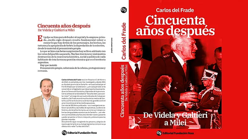El periodista, escritor e investigador Carlos del Frade, actual legislador del Frente Amplio por la Soberanía (FAS) por la Provincia de Santa Fe, presentará su nuevo trabajo: Cincuenta años después. De Videla y Galtieri a Milei. El trabajo, publicado por la Editorial Fundación Ross, será presentado el miércoles 25 de marzo en la Asociación Empleador de Comercio de Rosario (Corrientes 450) y también contará con encuentros en Córdoba, Corrientes y Santa Fe.