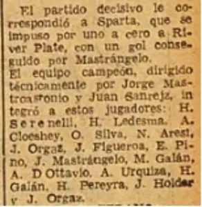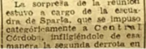 El 16 de agosto, en una jornada memorable, jugando la segunda rueda y en el encuentro revancha con uno de los grandes, Central Córdoba, La Capital publica: «SPARTA DIO LA NOTA EN LA JORNADA DEL MOLINAS».