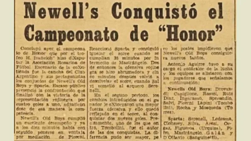 Sparta dejaba en el camino a Argentino y Central Córdoba y, en un partido a todo o nada jugado el 21 de noviembre, pierde la final con Newell’s, 4-1. Un Newell´s que llevaba en sus filas nada menos que a Picerni, Ingaramo, Sperandio y Rocha, entre otros. Los albinegros se quedan con el segundo puesto, perdiendo la posibilidad de participar en el Regional.