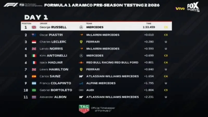 Durante la primera tanda, que se desarrolló entre las 4 y las 8 de la mañana (hora de Argentina) el monegasco Charles Leclerc (Ferrari) terminó primero en la primera sesión de los tests de pretemporada de la Fórmula 1 que se llevan a cabo en Baréin.