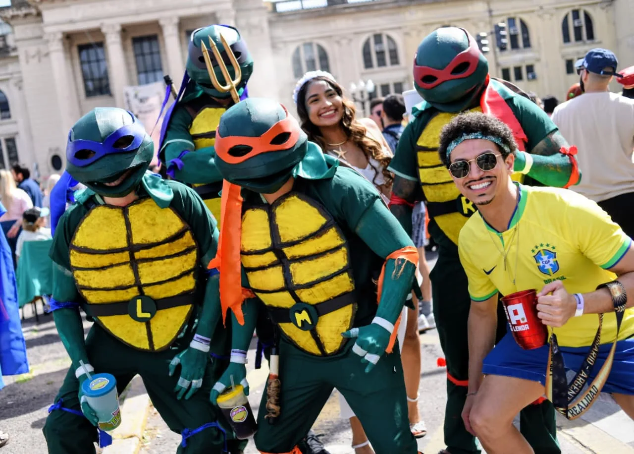 La celebración se llevó a cabo en la esquina de avenida Francia y Santa Fe, donde cientos de jóvenes dieron rienda suelta a la creatividad con trajes de magos, piratas, pensadores griegos, personajes de los Picapiedras e incluso una Ferrari, entre otros.