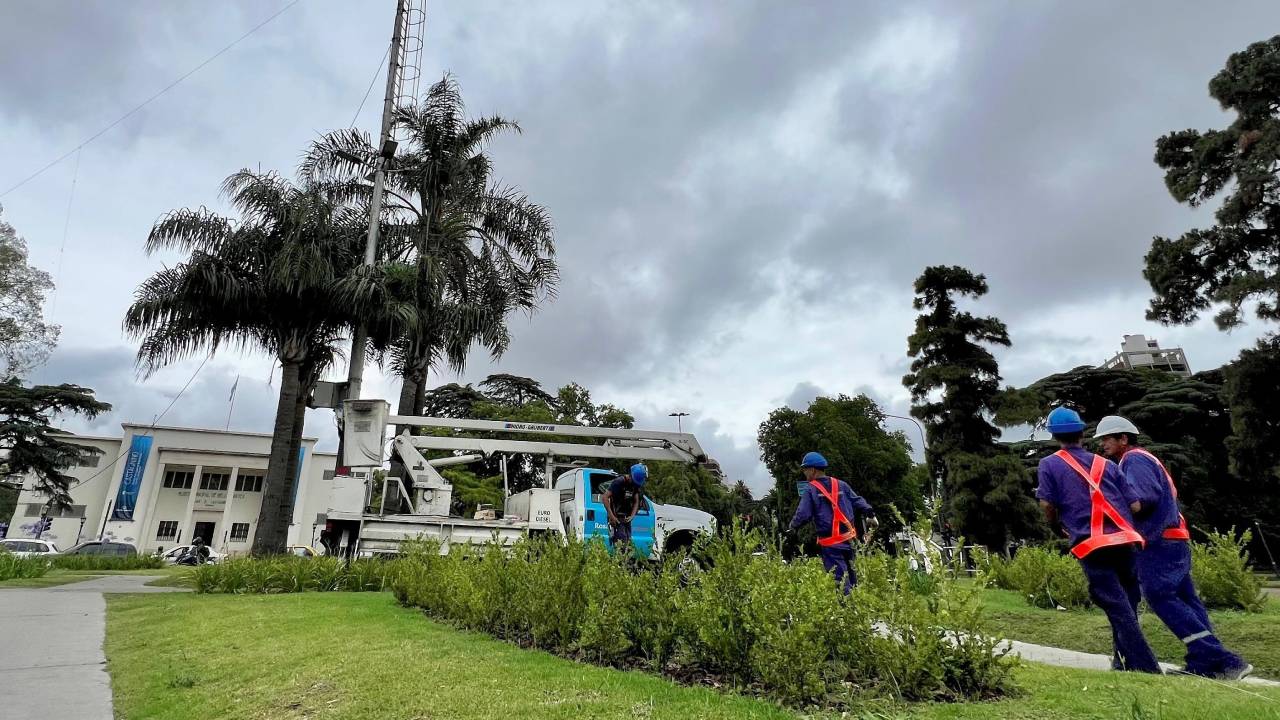 En el marco de los preparativos navideños, personal de la Dirección de Alumbrado Público comenzaron a tensar las guirnaldas que soportan 3.000 luminarias led. También se está instalando ornamentación navideña en el entorno del parque de la Independencia y sobre avenida Pellegrini.
