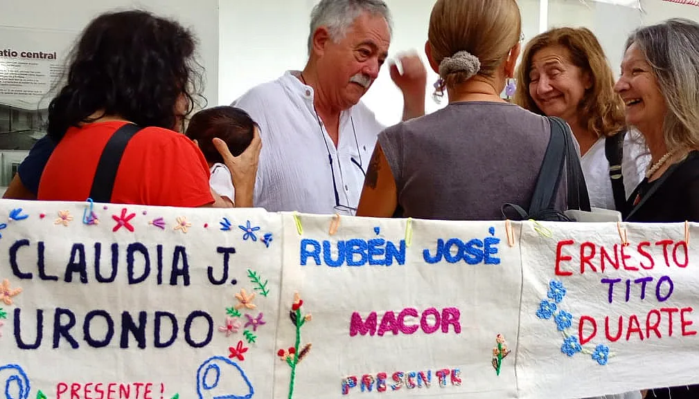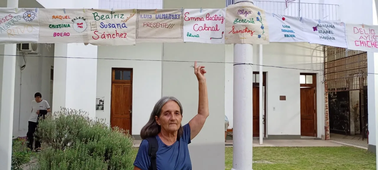 Y agrega: “Debo hacerlo, debemos hacerlo. Con todo lo que está pasando en este momento en el país, donde se repiten las maniobras nefastas de la época de la dictadura. Por eso me vi comprometida y me dio mucha alegría bordar. Bordé dos nombres de personas que no conocía”.