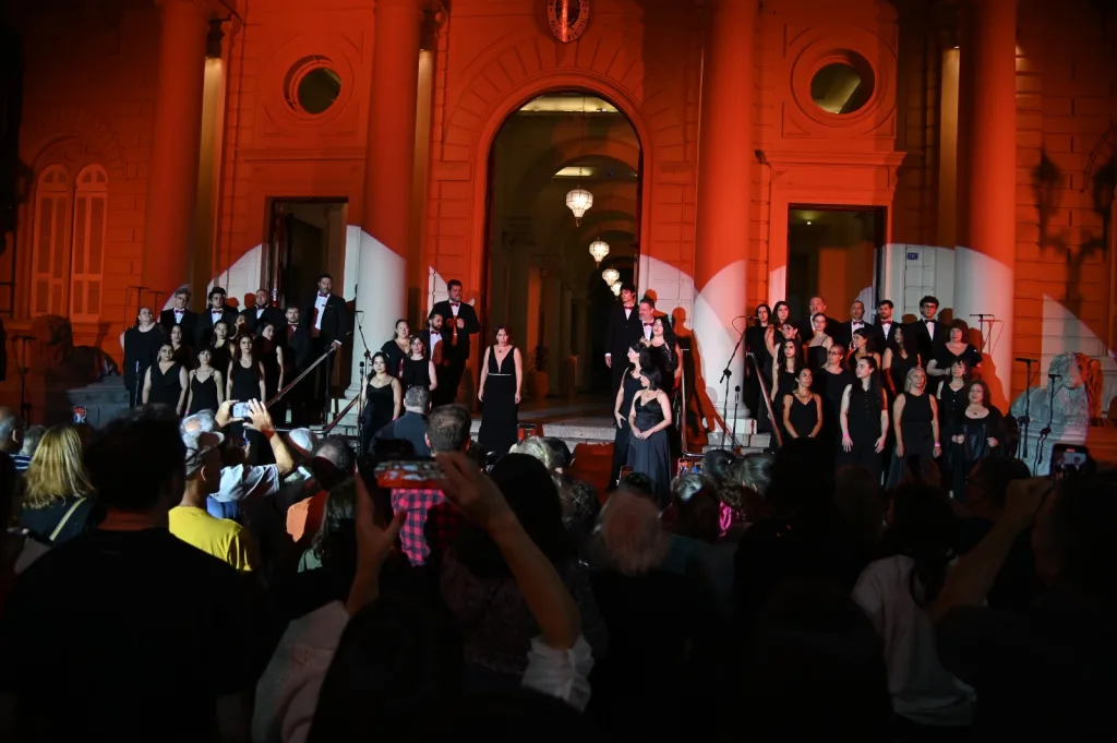 Un total de 50 músicos, entre ellos las soprano Patricia Villanova, Nazarena Vidal y Morena Sanchez Mastrángelo, y los tenores Martín Otaduy y Sebastián Zeballos (Intenors), junto al director del Coro de la Ópera de Rosario Horacio Castillo, y el director de escena del Estudio de Ópera del Teatro El Círculo Sebastián Núñez, interpretaron desde los balcones y ventanas del recientemente restaurado inmueble de Buenos Aires 711 distintas piezas de su clásico repertorio que incluyeron O mío babbino caro, aria de la ópera Gianni Schicchi, y Nessun dorma, aria de la ópera Turandot, ambas de Giácomo Puccini; Habanera, aria de la ópera Carmen de Georges Bizet; Brindisi, uno de los tres actos de la ópera La Traviata de Giuseppe Verdi; y O Sole mío, canción napolitana de Eduardo Di Capua. El cierre de la presentación fue la interpretación por parte del coro de ‘Es Rosario’, la canción compuesta por Fabián Gallardo en homenaje a la ciudad en el marco de los festejos por sus 300 años.