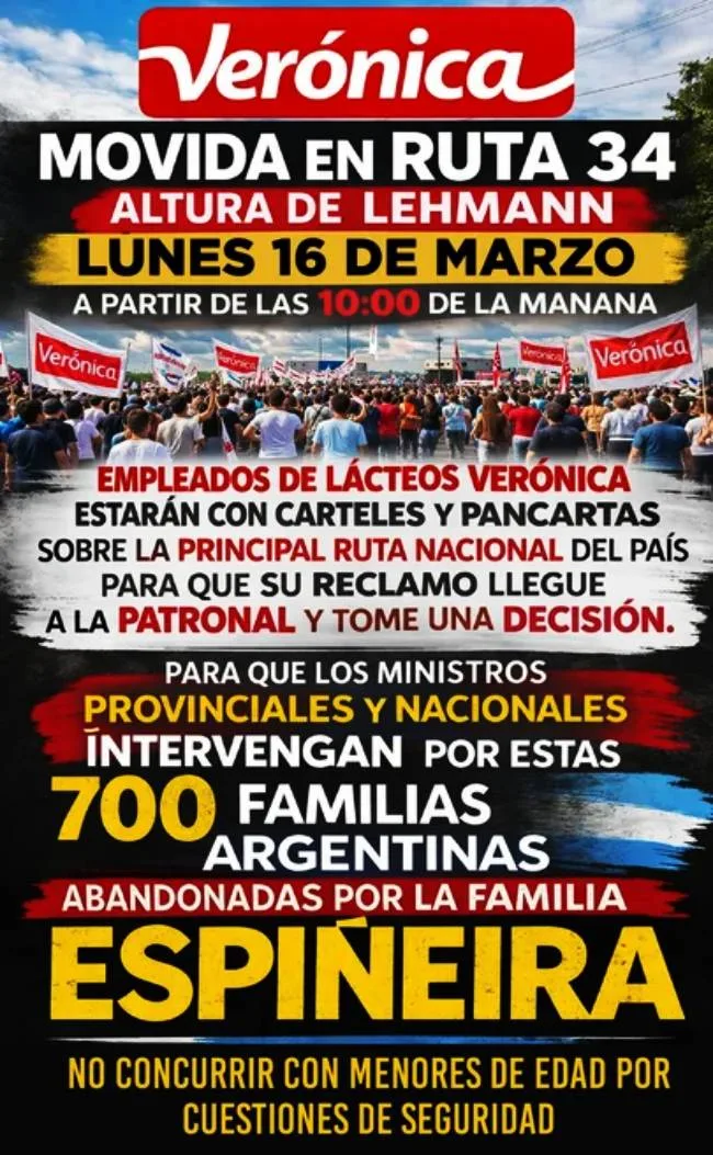 La crisis en la empresa Lácteos Verónica sigue profundizándose y los más de 700 trabajadores están en una situación límite. En este complejo marco, los empleados y sus familias convocaron a una movilización para el próximo lunes para exigir una respuesta de la patronal.