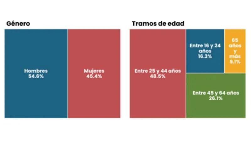 En el tercer trimestre de 2025, ésta era de 67,4%, casi 24 puntos porcentuales más elevada que la tasa global.