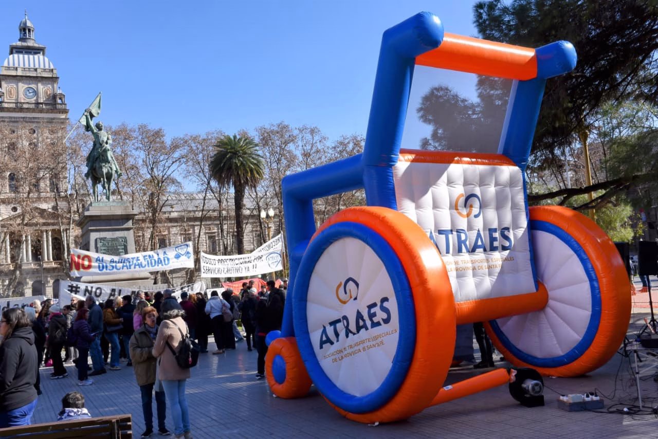 Organizaciones de Rosario y la región que trabajan con personas con discapacidad realizaron este martes al mediodía una masiva protesta frente a la sede local de Gobernación, en la plaza San Martín, en rechazo al veto del presidente Javier Milei a la Ley de Emergencia para el sector. La normativa, que había sido aprobada por el Congreso el pasado 10 de julio, buscaba recomponer pensiones y actualizar aranceles para prestadores de servicios, pero fue anulada por decisión presidencial.