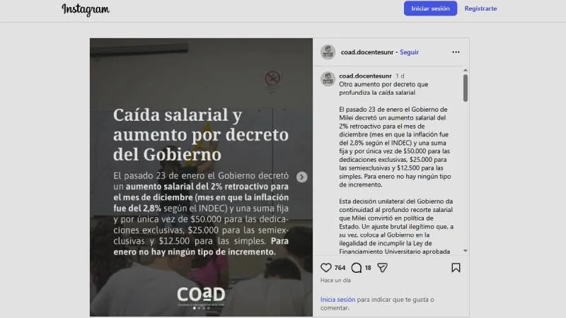 Desde COAD cuestionaron la decisión por considerarla unilateral y señalaron que consolida un fuerte recorte en los ingresos de la docencia universitaria. Asimismo, sostienen que la medida forma parte de una política de ajuste que, además, coloca al Ejecutivo en una situación de incumplimiento de la Ley de Financiamiento Universitario aprobada por el Congreso y de un fallo judicial que ordena su aplicación.