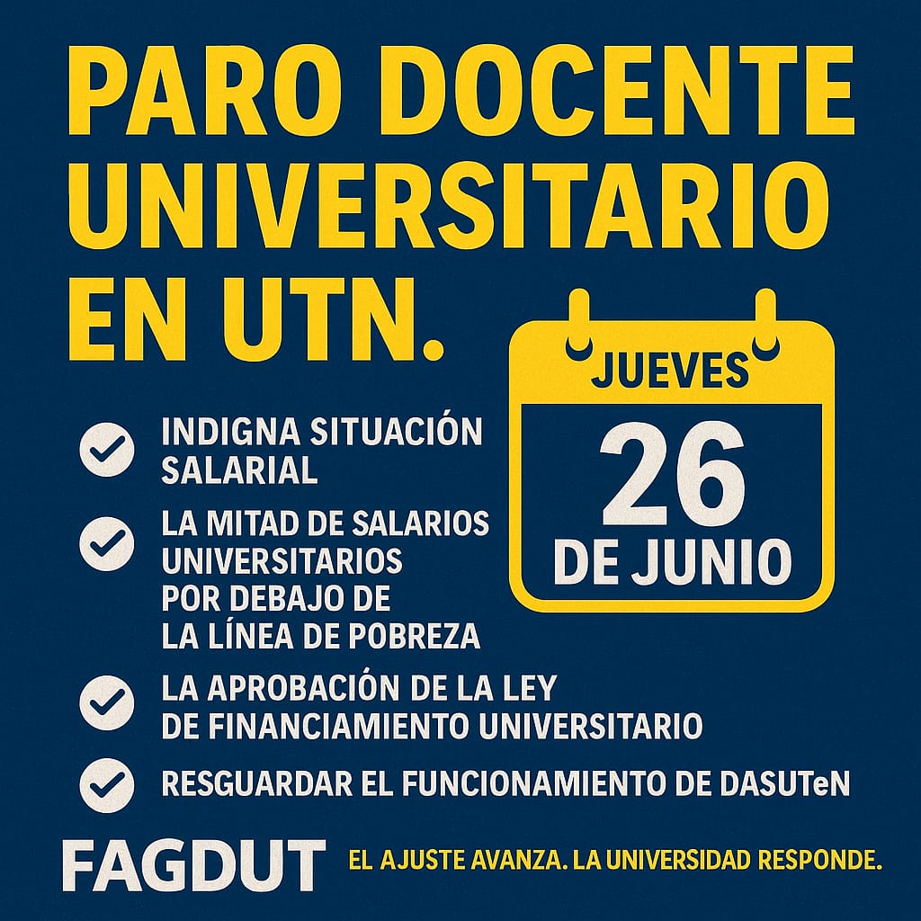 En las últimas horas de este martes, el gremio Fagdut, que representa a los docentes de la Universidad Tecnológica Nacional, determinó una medida de fuerza de 24 horas en todas las universidades del país, este jueves.