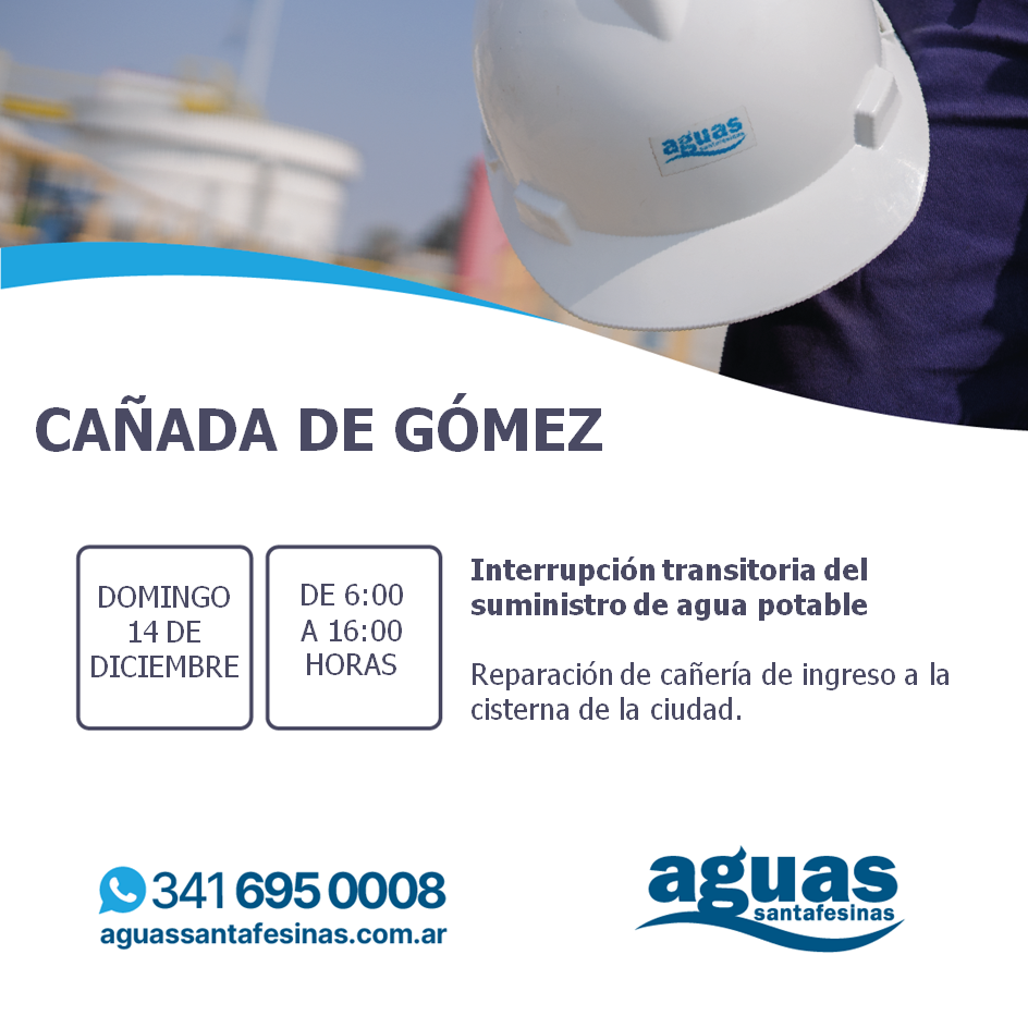Aguas Santafesinas informa a sus usuarios que realizará tareas de reparación sobre la cañería de ingreso a la cisterna de la ciudad.