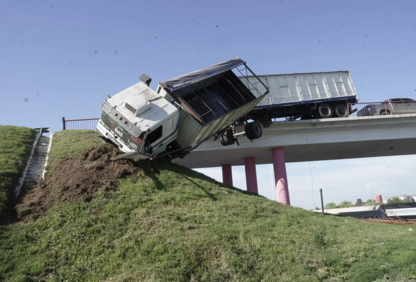 En ese hecho el cambió quedó colgado de un puente. Según el parte oficial su conductor se habría quedado dormido desbarrancado desde Circunvalación mano hacia el norte y quedando volcado sobre la bajada hacia calle Mendoza.