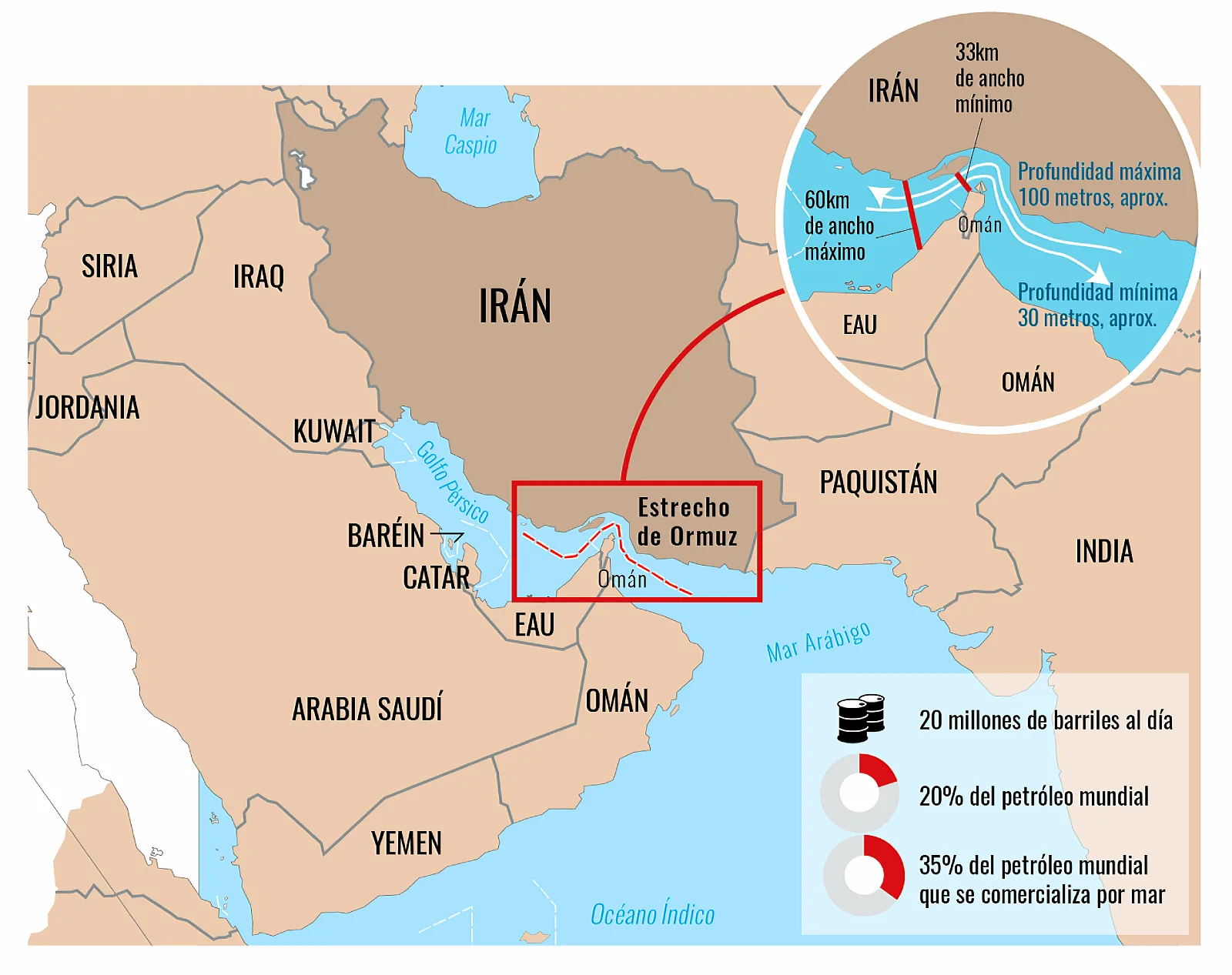 El impacto potencial sobre los mercados energéticos vuelve a estar en el centro de la escena. Por el estrecho de Ormuz circula cerca de una quinta parte del petróleo global, por lo que cualquier restricción adicional amenaza con recortar la oferta en un contexto ya sensible.