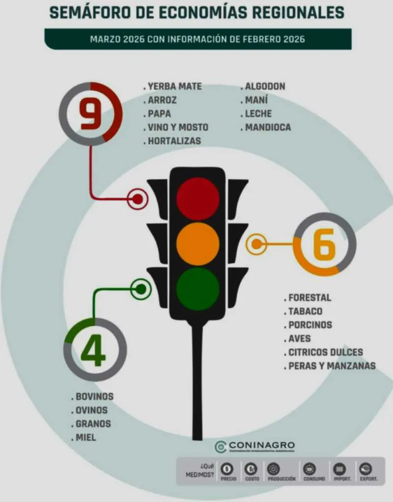 Estos son algunos de los datos que surgieron del último “Semáforo de las Economías Regionales” elaborado por el área de Economía de CONINAGRO, un índice con el cual la entidad busca reflejar la actualidad de las distintas producciones locales.