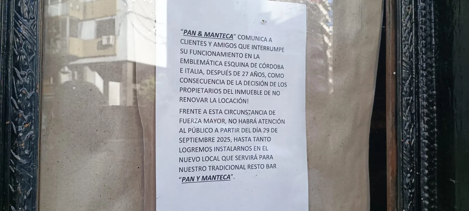 El tradicional restobar Pan y Manteca, ubicado desde hace 27 años en la emblemática esquina de Córdoba e Italia, en pleno Paseo del Siglo de Rosario, cerró sus puertas este lunes.