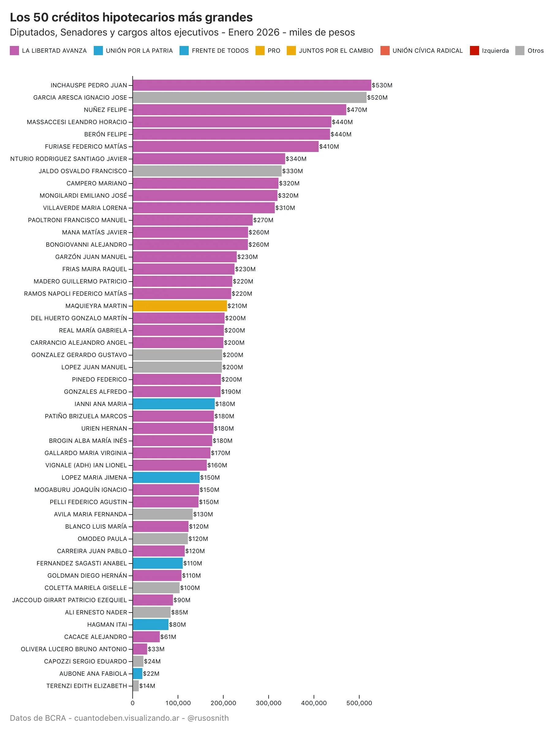 La lista incluye al radical tucumano con peluca Mariano Campero, otro que perforó identidades partidarias. El Nación le aprobó 279 millones de pesos, equivalentes a 243 mil dólares. Como Bongiovanni, acusó de «malicia» a las suspicacias y argumentó que el otorgamiento de ese crédito en mayo de 2025, coincidiendo con la creación de la Comisión investigadora de la megaestafa $LIBRA que integra e intentó paralizar, no es un pago por favores sino fruto de la demora en trámites bancarios que inició antes.