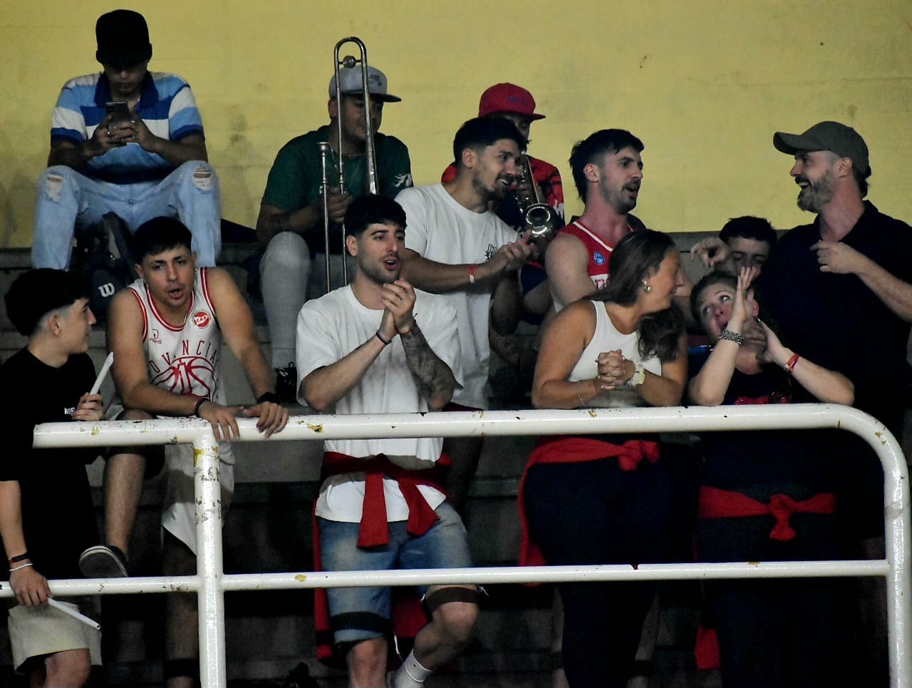 En ambas semis hubo mucho público del básquet rosarino y protagonista de diferentes clubes acompañando, pero en el caso de Provincial también uno de los integrantes del plantel de Liga Argentina, Matías Aristu, se subió a la tribuna a alentar junto a sus amigos y ex compañeros de inferiores.
