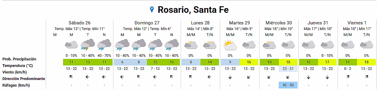 El domingo no habrá revancha, de acuerdo a la estimación meteorológica. Se prevé una mínima de 6 grados y una máxima de 12. Y sigue el agua: probabilidad de lluvias a lo largo de toda la jornada.