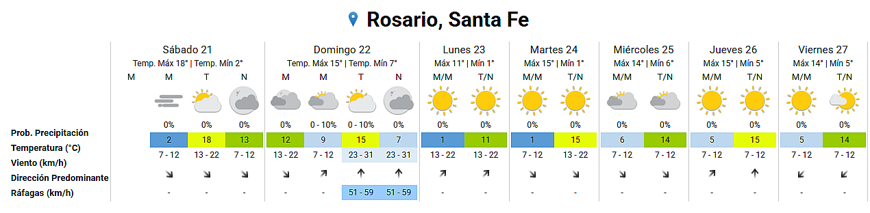 La máxima prevista por el pronóstico oficial para este sábado es de 18 grados, y con sol tenue por la nubosidad. A eso se suman vientos que soplarán del noroeste toda la jornada.