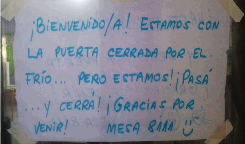 Con la baja temperatura del domingo, muchas autoridades de mesa decidieron mantener cerradas las puertas de las aulas o locales. Pero con un aviso en el ingreso que, en algunos casos, apeló al humor.