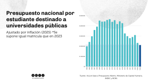 En términos reales, el presupuesto para 2025 es un 9% inferior al del año pasado y acumula una caída del 32% desde 2023. Este recorte compromete el funcionamiento de las universidades y limita su capacidad para garantizar el acceso a una educación superior gratuita y de calidad.