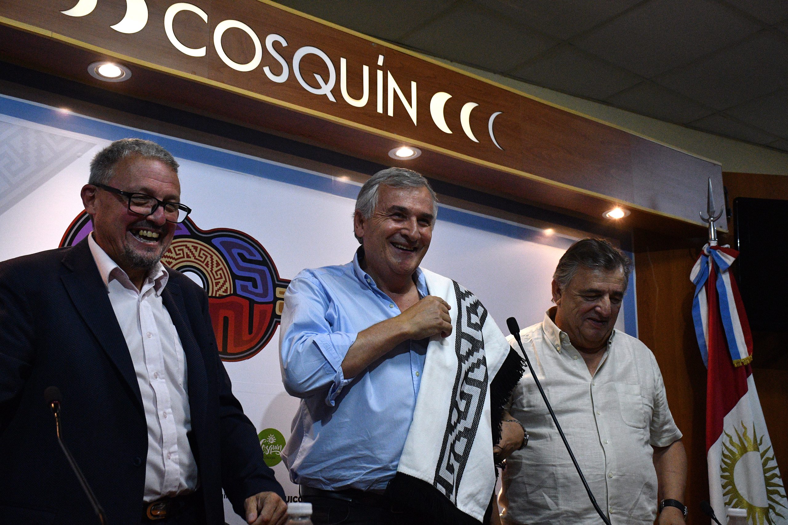 “Entonces yo digo que vendré a Cosquín como presidente”, recogió el guante el radical jujeño Gerardo Morales quien, acompañado por su correligionario Negri, recibió de manos de Musso el tradicional poncho coscoíno en el marco de un convenio cultural entre esta ciudad del Valle de Punilla y la provincia norteña.