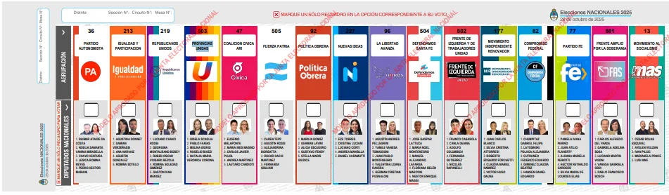 Desde Nación, ahora difundieron el modelo de la boleta única que se utilizará en estas elecciones y la posición que ocupará cada alianza y partido.