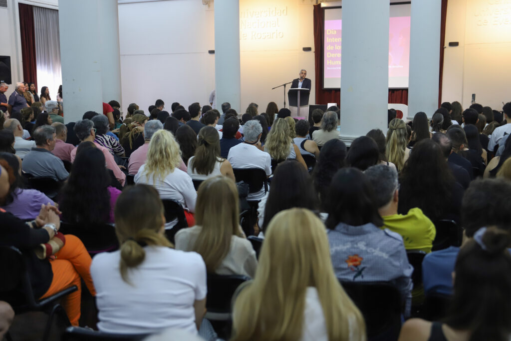 Antes de las distinciones a los distintos colectivos abrió el acto la Secretaria Área de Derechos Humanos de la UNR, Paula Contino, y las palabras final estuvieron a cargo del Rector de la Universidad, Franco Bartolacci.