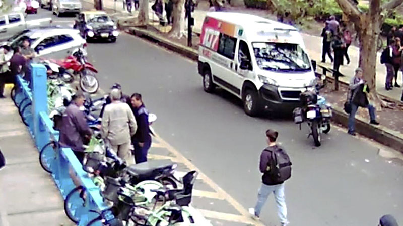 • Videos que capturan la llegada del sospechoso uniformado al playón de las unidades y el retiro de la ambulancia.